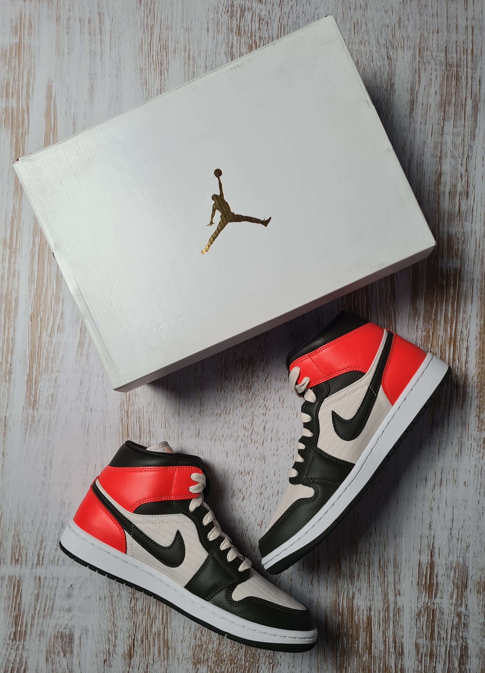 Erlebe mit dem Air Jordan 1 Mid Newsprint einen Sneaker, der Stil und Komfort neu definiert. Dieser Schuh ist ideal für alle, die mit einem auffälligen Look überzeugen wollen – ob im Alltag oder zu besonderen Anlässen. Das hochwertige Leder garantiert eine edle Optik und Langlebigkeit, während die verstärkte Sohle sicheren Halt und angenehmen Tragekomfort bietet. Das ikonische Air Jordan Wings-Logo und die kontrastreichen Farben machen ihn zum Blickfang. Der gepolsterte Schaft sorgt für zusätzlichen Komfort den ganzen Tag. Hol dir jetzt diesen Klassiker und setze ein Statement!