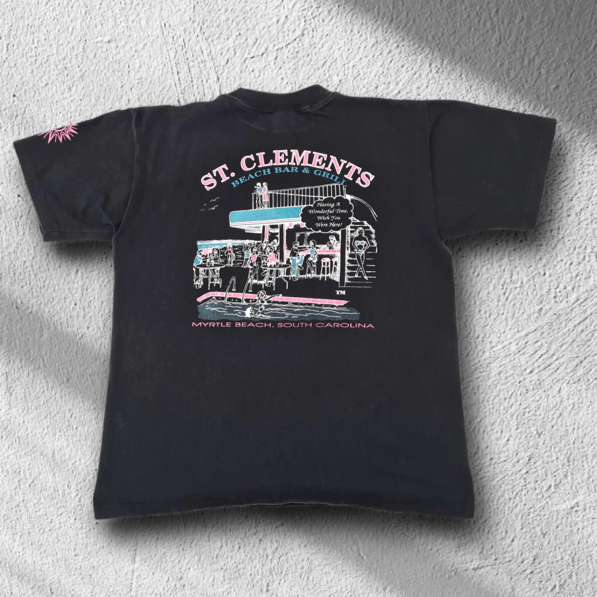 80s/90s Vintage Single Stitch T-Shirt St. Clements Myrtle Beach | Schwarz | Größe L