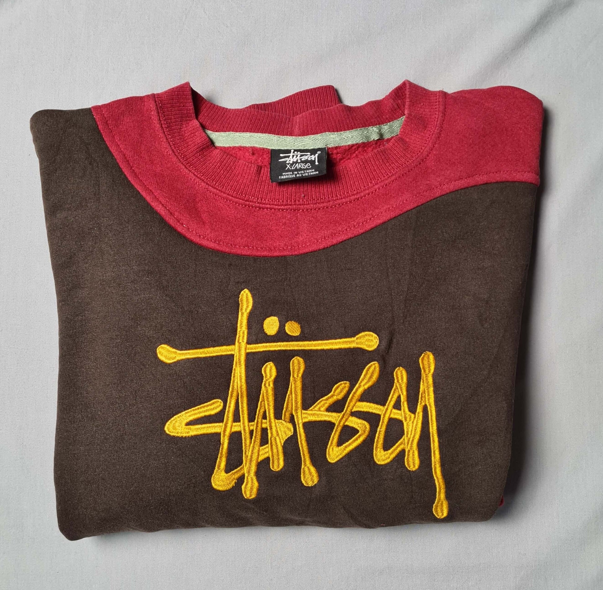 Dieses Vintage Stüssy Sweatshirt ist ein echtes Rework-Unikat, das mit seinem zweifarbigen Design in Bordeauxrot und Dunkelbraun sowie dem gelb-goldenen Stüssy Front-Stick alle Blicke auf sich zieht. Das Sweatshirt wurde professionell überarbeitet (Rework) – das bedeutet: aus verschiedenen Vintage-Textilien neu zusammengesetzt und zu einem einzigartigen Piece gemacht. Dadurch erhältst du ein nachhaltiges Fashion-Statement, das du so kein zweites Mal findest.